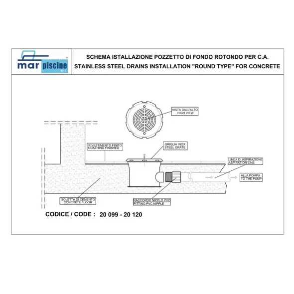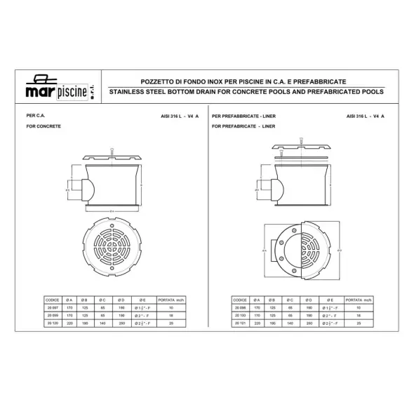 Материал: нержавеющая сталь AISI 316LДиаметр: 170 ммТип установки: под бетонСоединение: 2"