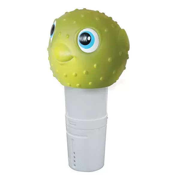 Плавающий дозатор-игрушка Рыбка-фугу для хлорирования бассейнов. Серия «Пучеглазики». Изготовлен из безвредного полимера. Регулирует интенсивность попадания дезинфицирующих веществ в воду бассейна. Таблетки в комплект не входят.