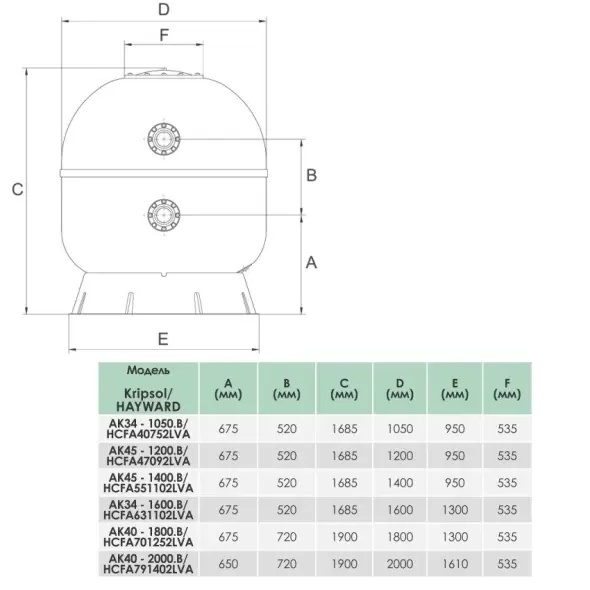 Производительность: 62 м?/часЗагрузка песка: 2450 кгТип подсоединения: боковоеДиаметр фильтра: 1400 мм