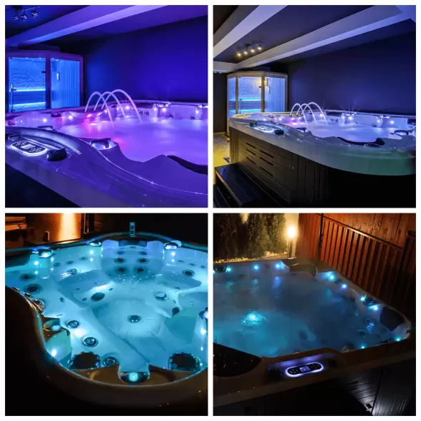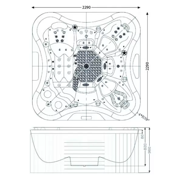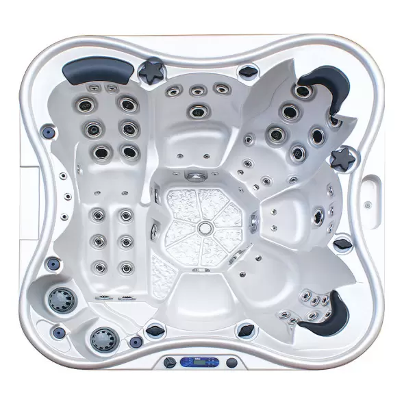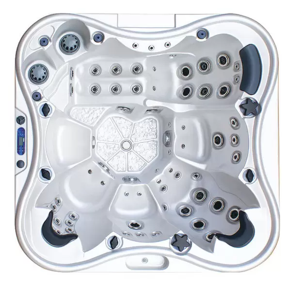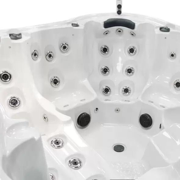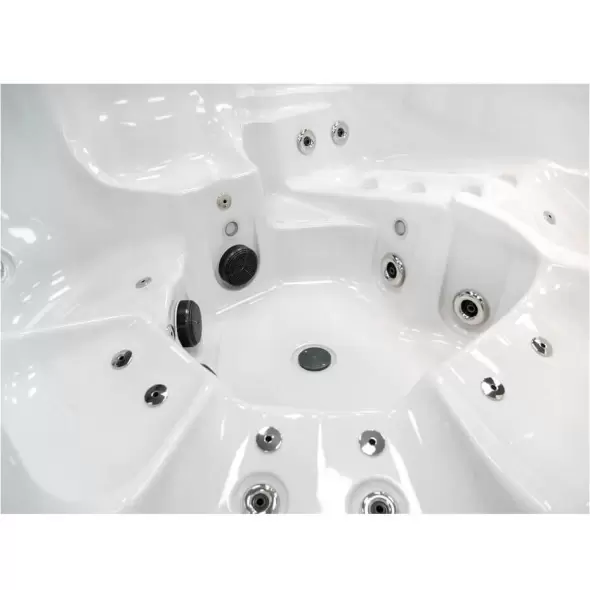 Количество мест: 6 сидячих (из них 1 в положении полулежа)Общее количество гидрофорсунок: 60 штОбщее количество аэрофорсунок: 10 штОбъём бассейна (90%): 1800 лРазмер бассейна: 229х229х96 см
