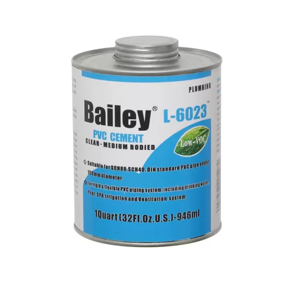Клей для труб ПВХ Bailey L-6023 подойдет для систем с питьевой водой, бассейнов, систем орошения, канализации и вентиляции. Одинаково эффективен для гибких и жестких систем трубопроводов.