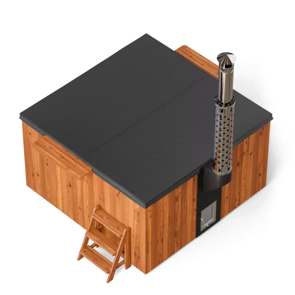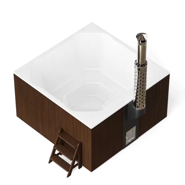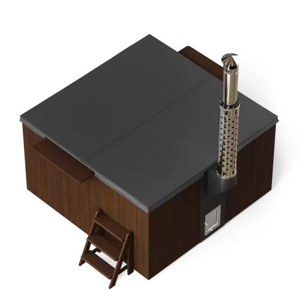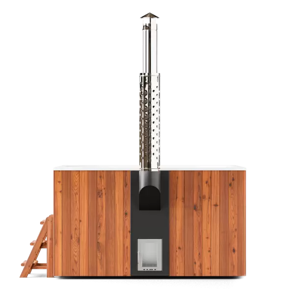 Купель можно использовать на улице при любой погоде. Изготовленная по нашему эксклюзивному проекту встроенная печь POLARSPA мощностью 35кВт нагревает воду за 1,5-2 часа до комфортной температуры. Печь абсолютно безопасна – защитный экран на дымоходе, жаропрочное стекло, никаких острых углов, а все технические коммуникации спрятаны внутри конструкции.