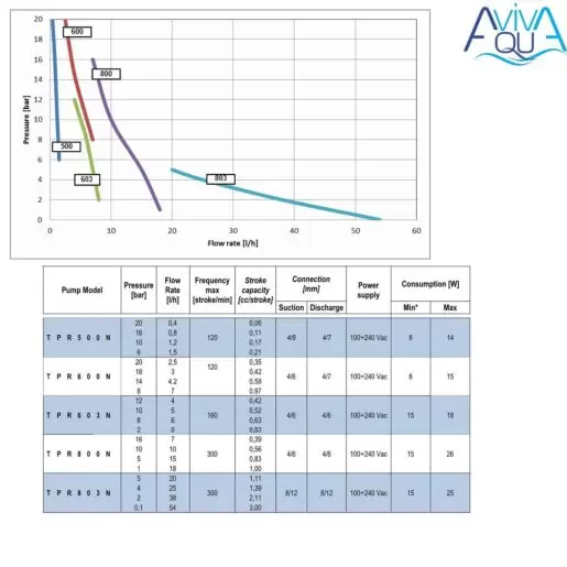 Соленоидный автоматический дозирующий насос AquaViva серии TPR. Имеет цифровой блок микропроцессорного управления с ЖК-экраном. Используются для работы в контуре системы дезинфекции средних и габаритных бассейнов. Диапазон рекомендуемых бассейнов составляет от 200 до 750 м.кубич. (до 650 для уличных). Принцип действия устройства основан на вращении соленоидной катушки, воздействующей на диафрагму, которая в свою очередь выталкивает жидкость через головку насоса. Серия насосов AquaViva TPR использует высококачественные диафрагмы PTFE. Политетрафторэтилен - материал, обладающий редкими физическими и химическими свойствами, он устойчив к большинству агрессивных сред и имеет высокую рабочую прочность. Насос выполняет автоматическую дозацию жидких реагентов в контур бассейна пропорционально, согласно данным датчиков Redox/Ph. Также добавление раствора может осуществляться на постоянной основе, согласно ручной настройке пользователя. Зонды и калибровочные растворы приобретаются отдельно.