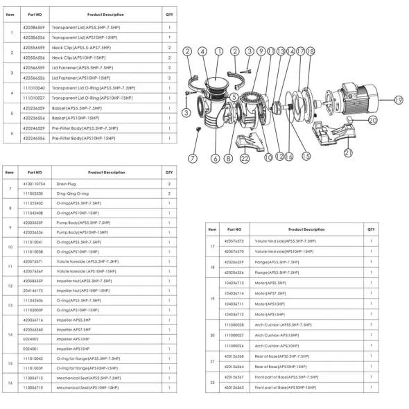 Трехфазный насос Aquaviva серии APS с префильтром - это идеальный вариант для циркуляции воды в бассейнах объемом до 1000 м?.