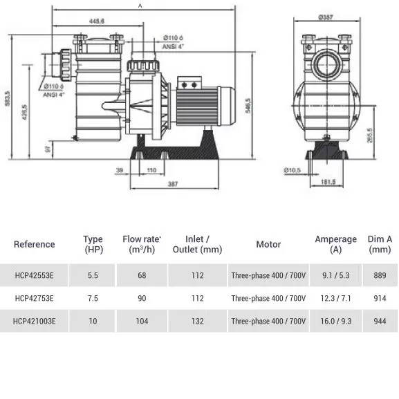 Самовсасывающий центробежный насос HCP421003E c префильтром для коммерческих бассейнов. Используется для фильтрации и циркуляции воды. Линейка HCP была разработана компанией Hayward как надежная альтернатива тяжелым чугунным и бронзовым насосам для коммерческого применения. Изготовлены из легкого прочного термопластика, обогащенного стекловолокном. Гидравлические узлы из Noryl позволяют использовать насосы с соленой и морской водой. Оснащен префильтром большой емкости. Прозрачная крышка префильтра на 4-х легкооткидных винтах из нержавейки. В насосе используется высокомощный охлаждаемый мотор TEFC отвечающий стандарту экономии энергии IE3 (сверхвысокий класс энергоэффективности). Модель 400/700В с 4-полюсным движком на 1450 об/мин. Рекомендован для использования в бассейнах объемом до 416000 литров.