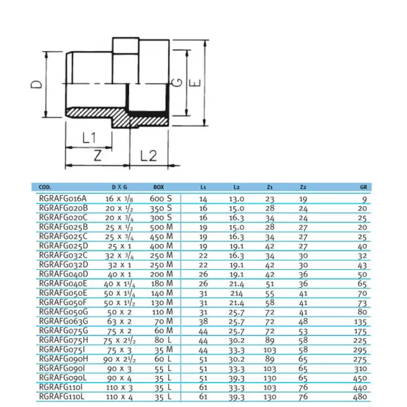 Ниппель переходной втулочное окончание ВР EFFAST d50x1-1/4" RGRAFG050E из непластифицированного поливинилхлорида PVC-U. Пр-во Италия. Изделия из ПВХ оптимальны для транспортировки жидкостей от 1 до 60°C под давлением и могут использоваться в системах водоснабжения и водоподготовки.