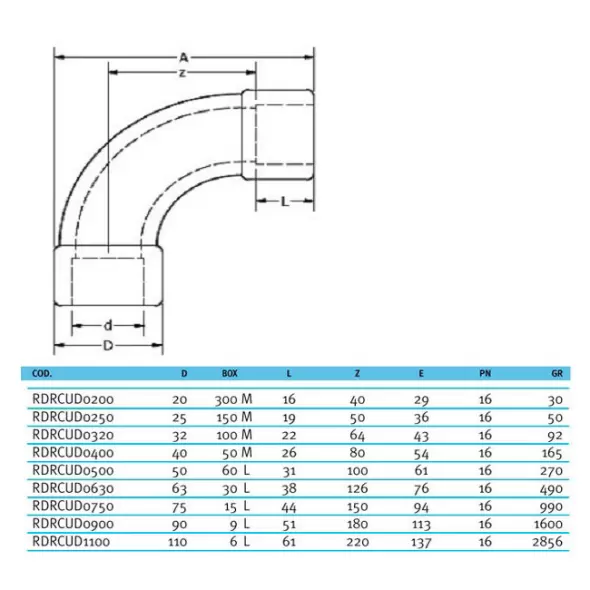 Отвод плавный 90° EFFAST d110mm RDRCUD1100 из непластифицированного поливинилхлорида PVC-U. Пр-во Италия. Изделия из ПВХ оптимальны для транспортировки жидкостей от 1 до 60°C под давлением и могут использоваться в системах водоснабжения и водоподготовки.