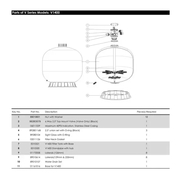 Фильтр Aquaviva V1400 для механической очистки воды в частных плавательных и SPA бассейнах объемом до 277 000 л. Емкость укреплена обмоткой из стекловолокна и обработана специальной пропиткой. Комплектуется клапаном на 6 режимов и универсальными соединительными муфтами на 2,5" (75 мм). Модель увеличенной мощности.