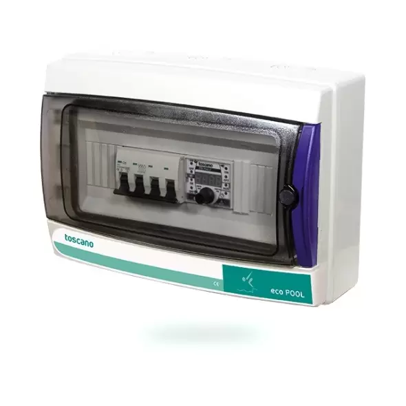 Панель управления фильтрацией Toscano ECO-POOL-400 с таймером. Используется для контроля фильтрационной системы бассейна и работы трехфазного насоса. Простой и понятный интерфейс.