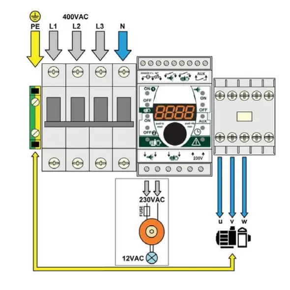 Вспомогательное реле: свободный контакт 250В / 5А макс.