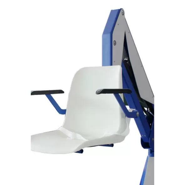 Подъемник для инвалидов F100 - фиксированный подъемник с механическим вращением позволяет человеку с ограниченными возможностями, пожилым людям или людям после травм легко, комфортно и безопасно спуститься в воду бассейна. Управление операциями поворота механической стрелы осуществляется вручную, а опускания и подъема из воды с помощью специального кнопочного пульта со спиральным кабелем. Настраивается в зависимости от типа бассейна и высоты. Подъемник должен быть обязательно закреплен на полу из железобетона с помощью 8 дюбелей или цементного цоколя размером 60x60x60 см.