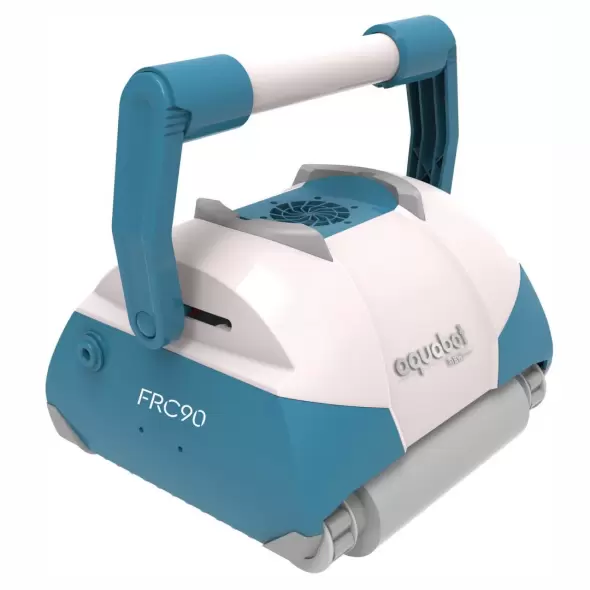 Aquabot FRC90 имеет функциональную ручку для смены траектории движения. Также пылесос оборудован гироскопической системой Gyro и навигационным алгоритмом AquaSmart. Оснащен двойным многоразовым фильтр-мешком. Встроен индикатор полного фильтра и датчик холостого хода.
