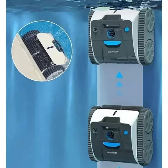 Беспроводной робот-пылесос Aquaviva Osprey 700 – идеальный вариант для уборки бассейнов любой формы и поверхности площадью до 50 м². Он полностью автономен и не требует подключения к сети. Робот самостоятельно составляет маршрут передвижения и очищает бассейн в труднодоступных местах.