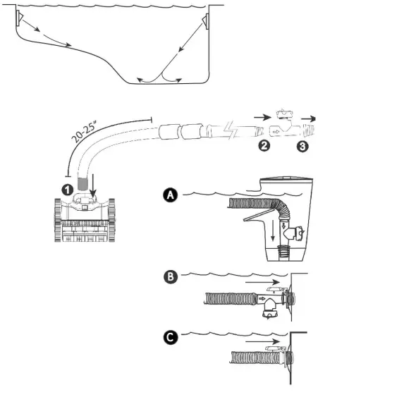 Сменные насадки для горловины (большая, средняя, малая) для оптимизации силы всасывания в соответствии с протоком бассейна