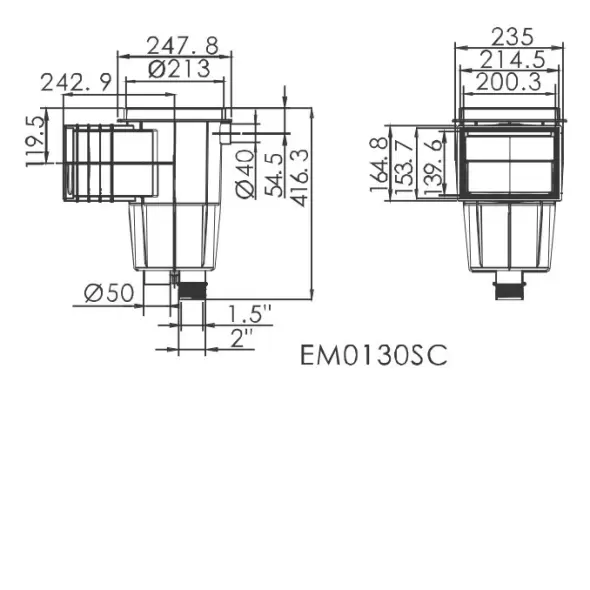 Скиммер под бетон Standart EM0130-SV с квадратной крышкой. Изготовлен из прочного ABS пластика, устойчивого к ультрафиолету, давлению воды и химическим реагентам.