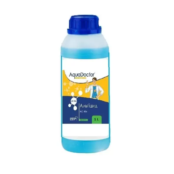 Альгицид Аквадоктор АС – жидкий, непенящийся химический состав с мощным бактерицидным, противогрибковым и противоводорослевым действием, предназначен для предотвращения появления и устранения водорослей, бактерий, грибков в воде бассейна.