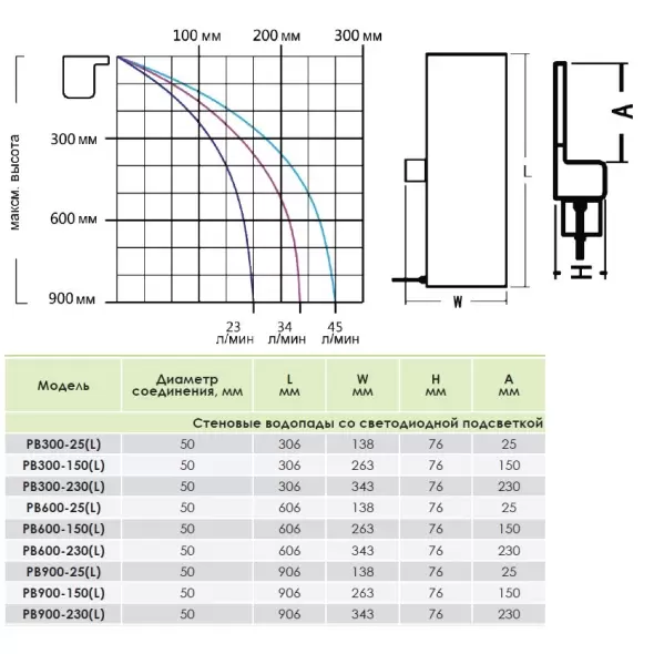 Стеновой водопад Aquaviva PB 300-230(L) с LED подсветкой - это отличный вариант для украшения зоны бассейна. Помимо декоративного эффекта, водопад формирует поток воды с массажными свойствами. Настройка цвета при помощи панели или пульта.