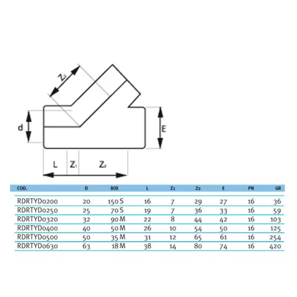 Тройник клеевой 45° EFFAST d32mm RDRTYD0320 из непластифицированного поливинилхлорида PVC-U. Пр-во Италия. Изделия из ПВХ оптимальны для транспортировки жидкостей от 1 до 60°C под давлением и могут использоваться в системах водоснабжения и водоподготовки.