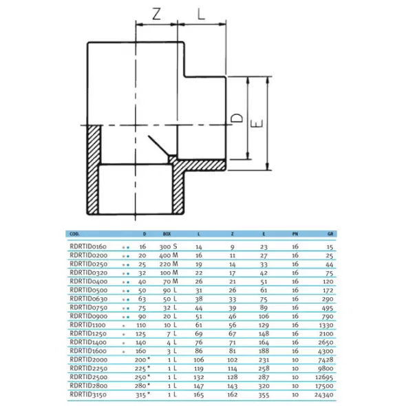 Тройник клеевой 90° EFFAST d160mm RDRTID1600 из непластифицированного поливинилхлорида PVC-U. Пр-во Италия. Изделия из ПВХ оптимальны для транспортировки жидкостей от 1 до 60°C под давлением и могут использоваться в системах водоснабжения и водоподготовки.
