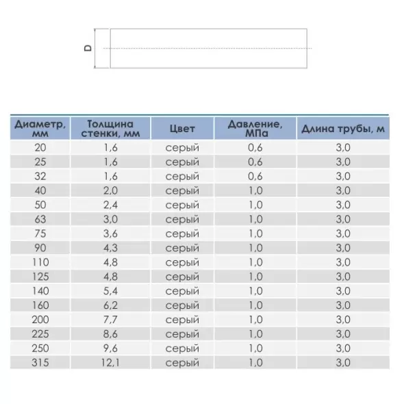 Труба Aquaviva изготовлена из высокопрочного ПВХ, выдерживает давление до 10 атмосфер. Цена указана за 3 м. Отпускается единицами по 3 м. Цвет: серыйМатериал: термостойкий поливинилхлорид