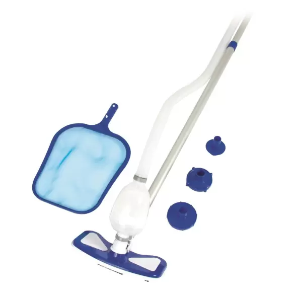 Уборочный комплект Pool :Телескопическая алюминиевая штанга: 279 смЩетка для дна с нижним ворсомПоверхностный сачокШланг: 750 смПереходники для подсоединения к любым фильтровальным системам Bestway