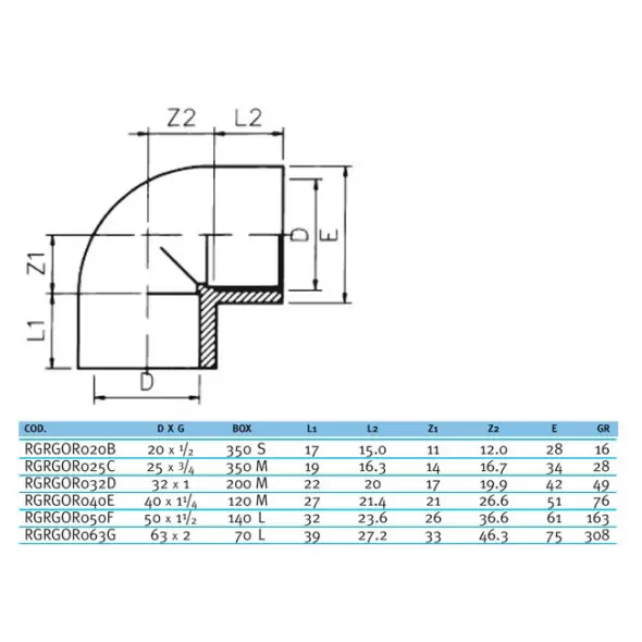 Угол 90° c металлическим кольцом EFFAST d25x3/4" RGRGOR025C из непластифицированного поливинилхлорида PVC-U. Пр-во Италия. Изделия из ПВХ оптимальны для транспортировки жидкостей от 1 до 60°C под давлением и могут использоваться в системах водоснабжения и водоподготовки.