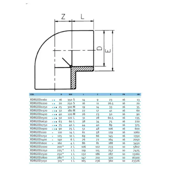 Угол клеевой 90° EFFAST d50mm RDRGOD0500 из непластифицированного поливинилхлорида PVC-U. Пр-во Италия. Изделия из ПВХ оптимальны для транспортировки жидкостей от 1 до 60°C под давлением и могут использоваться в системах водоснабжения и водоподготовки.
